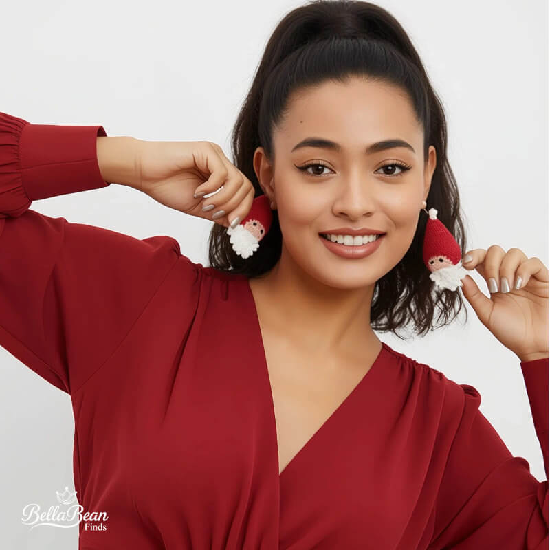 Meet your new favorite holiday accessory! These hand-crochet Santa Claus earrings are bursting with whimsical charm and artisanal love. Each jolly Santa, with his fluffy white beard and merry red hat, is meticulously crafted by skilled hands using soft, high-quality yarn—making them a cozy and lightweight wear for all your seasonal celebrations.